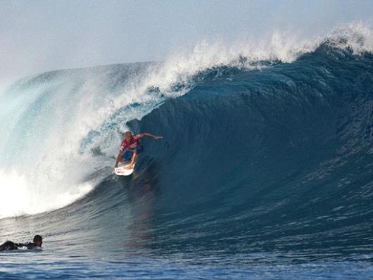 Cloudbreak, Tavarua / Fiji – a abertura do Volcom Fiji Pro, evento No. 4, de 10 da ASP World Championship Tour 2013 (WCT), começou com quatro a seis pés de onda e tubos em Cloudbreak, quase completando a primeira fase de 12 baterias no round de não eliminação.